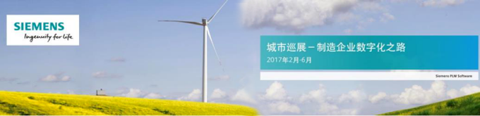 2017 年 2 月至 6 月,由西門子工業(yè)軟件事業(yè)部主辦的城市巡展,將走進(jìn) 25 個城市和地區(qū),與廣大制造業(yè)企業(yè)一起暢談“制造企業(yè)數(shù)字化之路”,解答企業(yè)關(guān)于產(chǎn)品設(shè)計以及數(shù)字化制造的共通問題,探索企業(yè)快速實現(xiàn)數(shù)字創(chuàng)新的發(fā)展意義。我們誠摯邀請您與西門子公司一起攜手開啟企業(yè)數(shù)字化發(fā)展之路。期待您的蒞臨!