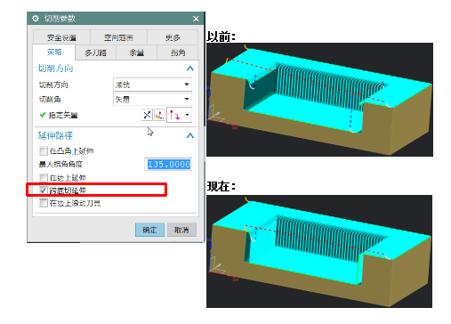 ?  改進了步距設置為應用在部件上的區域銑削刀軌質量