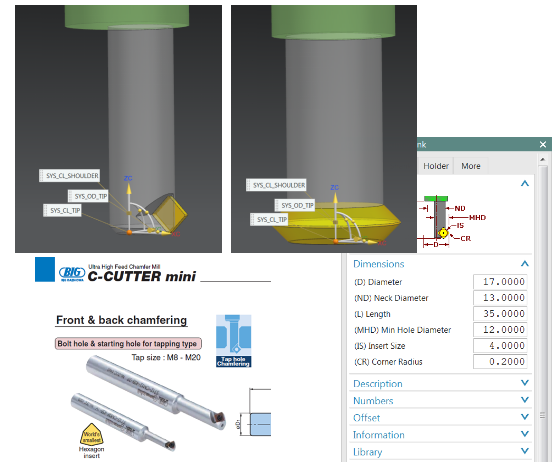 功能:? 新的背面埋頭孔專用刀具類型? 參數化的刀具定義偏心軸? 根據長度、直徑、頸部直徑、最小孔徑和刀片大小控制尺寸? 目前僅支持45度的切削邊刀片? 旋轉和非旋轉表示? 支持庫 (導入/導出)益處:? 從背面加工倒角的專用刀具