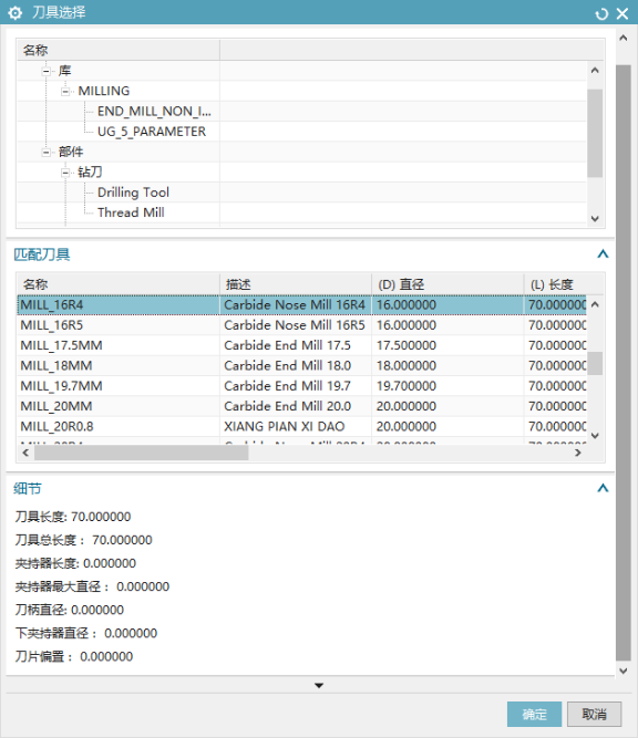 在刀具細節(jié)里,可以方便的查詢每把刀具的詳細參數(shù),包括直徑、R角、刀長等。還可以分類成車刀、銑刀、鉆刀等。