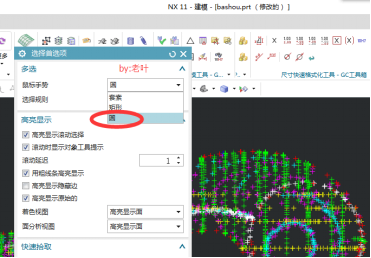 在NX11以前,我們在框選對象的時候只有【矩形】和【套索】兩種選擇方法,當我們在選擇一些圓形類點云數(shù)據(jù)時往往很不方便。現(xiàn)在NX11.0新增一種“圓”鼠標手勢選擇!對于一些回轉(zhuǎn)類的堆積對象或者說圓形類的點云等在框選的時候帶來了極大的方便!