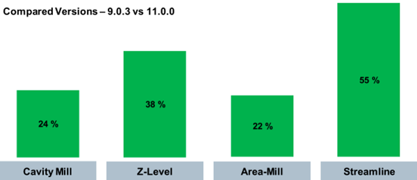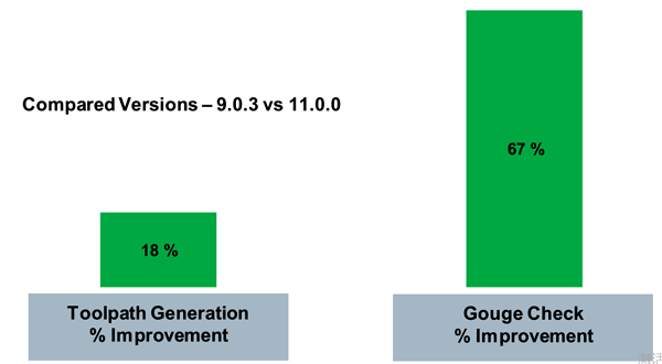 2.1與9.0.3相比刀路計算速度提升18%,過切檢查提升67%(包含IPW編程方式)。
