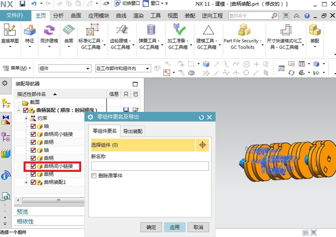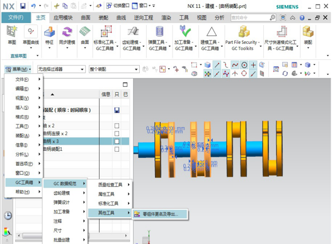 在做裝配的時候很多朋友都有這樣的疑惑,裝配之前可能不知道某些零件后續會不會用到,或者命名就隨便給了一個名字。隨著后期產品的不斷修改,原來的名字對于后續的工作產生了很大影響,查找起來十分不方便,就想把名字換掉,但是修改名字后,總裝配又無法加載了。遇到這種情況我們可以應用一個在UG中很容易被大家忽略的命令來幫我們完成重命名,就是GC工具箱—GC數據規范—其他工具—重命名和導出組件這個命令。這個命可將裝配里的零件名稱和已經建立的文件名稱進行修改同時可以繼承裝配關系非常好用。