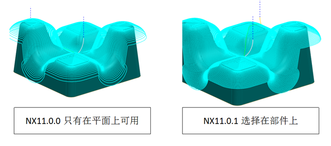 今天給大家介紹一個NX11.0.1版本中固定軸輪廓銑削模式下驅動方法為區域銑削選擇陡峭非陡峭時的更新內容。