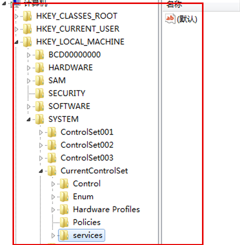 4、運行regedit,選擇HKEY_LOCAL_MACHINESYSTEMCurrentControlSetServices,滾動 這個列表,刪除所有Oracle入口。